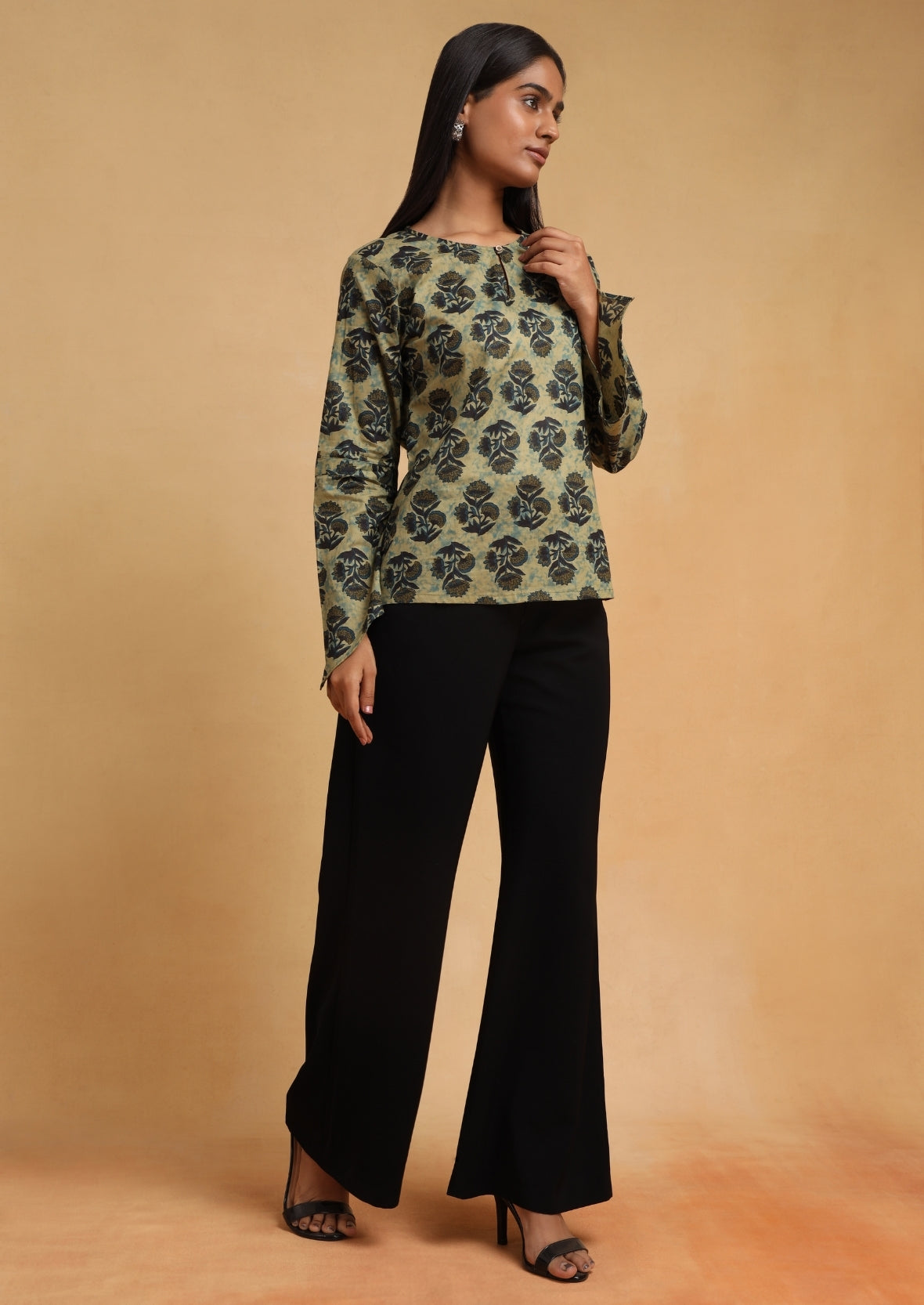 Green Printed High Belle Top combines comfort with elegance, making it an ideal choice for both casual outings and refined gatherings.