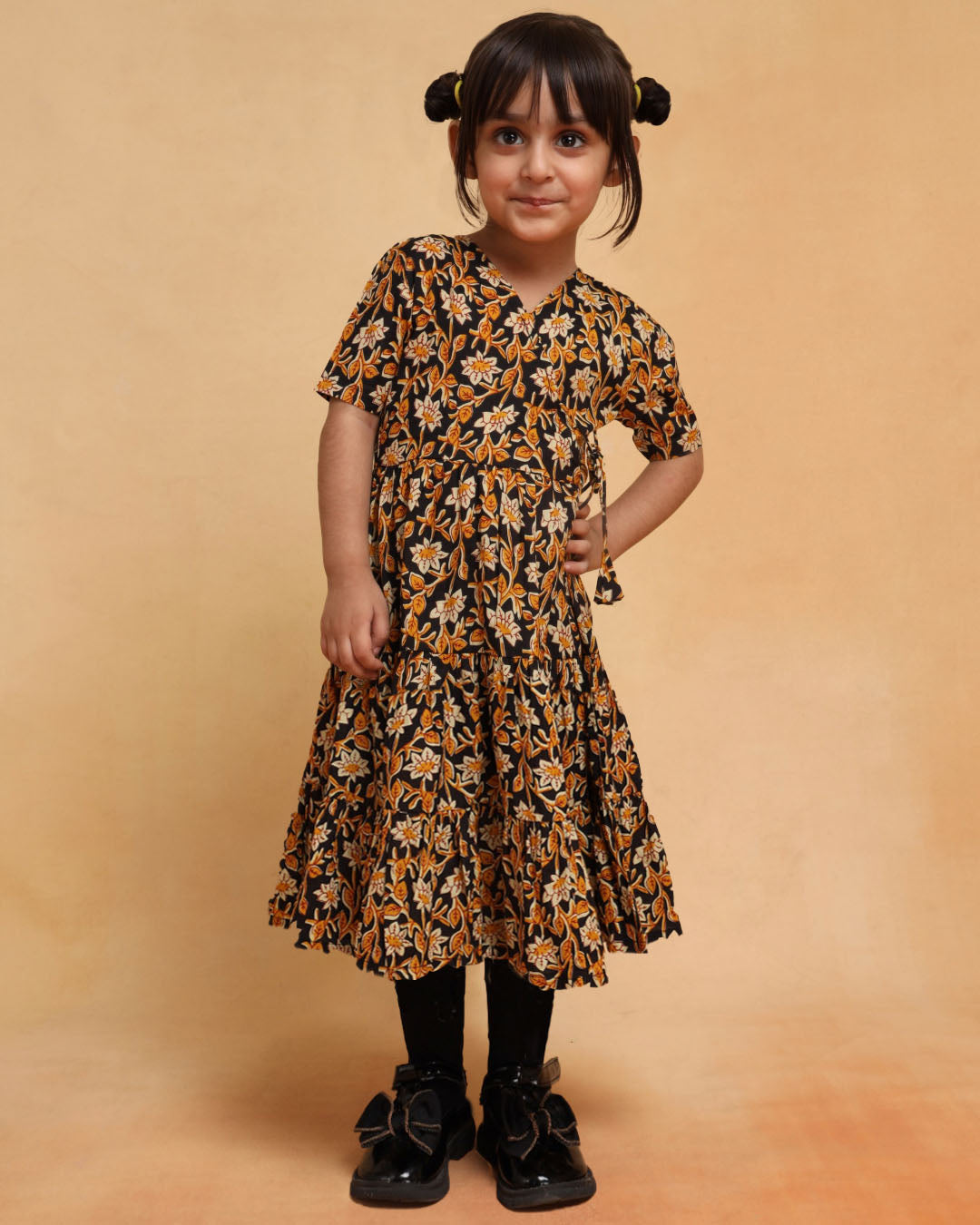 Casual or Dressy: Whether it’s a casual day out or a special family gathering, the Mustard Floral Dress can be dressed up or down, making it a versatile addition to your child's wardrobe.